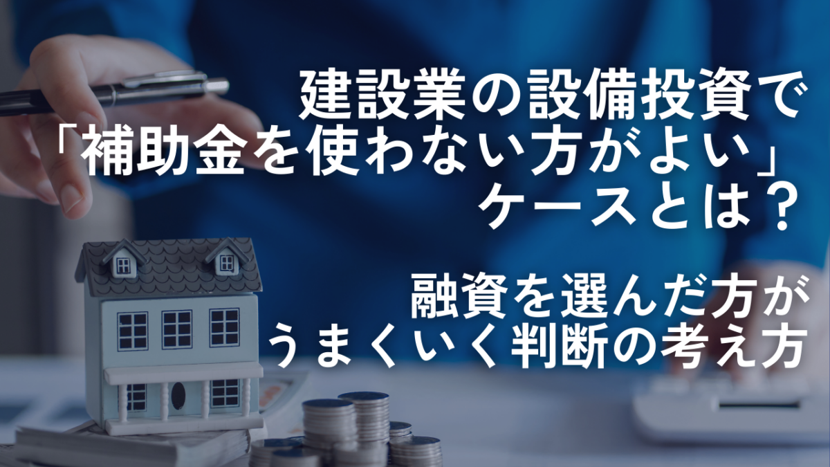 を重視する建設業においては、補助金より融資を選ぶ方が結果的に成功する設備投資が多いというのが実務的な結論です。