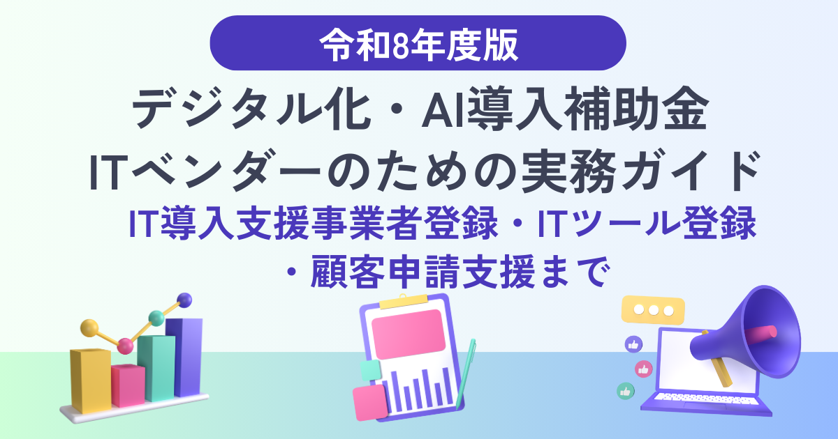 本記事では、「デジタル化・AI導入補助金」を活用したいITベンダー向けに、制度の考え方と実務対応を整理し、IT導入支援事業者登録から顧客の申請支援までを一貫した流れで解説します。