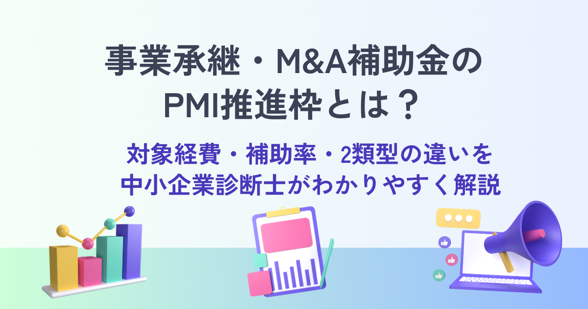 本記事では、PMI推進枠の概要・2つの類型の違い・対象となる経費・活用するうえでの考え方を、中小企業診断士の視点からわかりやすくお伝えします。