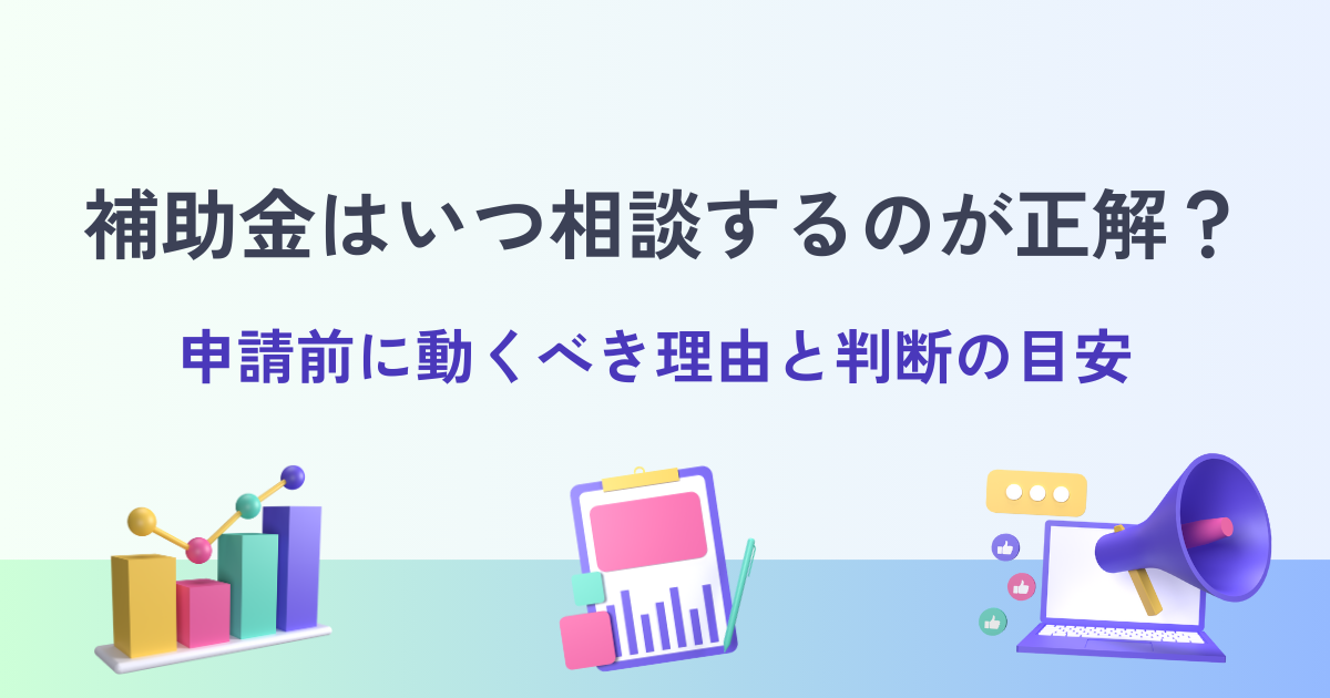 このページでは、初めて補助金を検討する方向けに、相談の適切なタイミングと判断の目安を分かりやすく解説します。